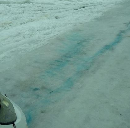 勢い余って大スピンして雪壁にぶつかったら運悪く何か固い物がラジエターに当たったらしく、冷却水が漏れ出しちゃいました。